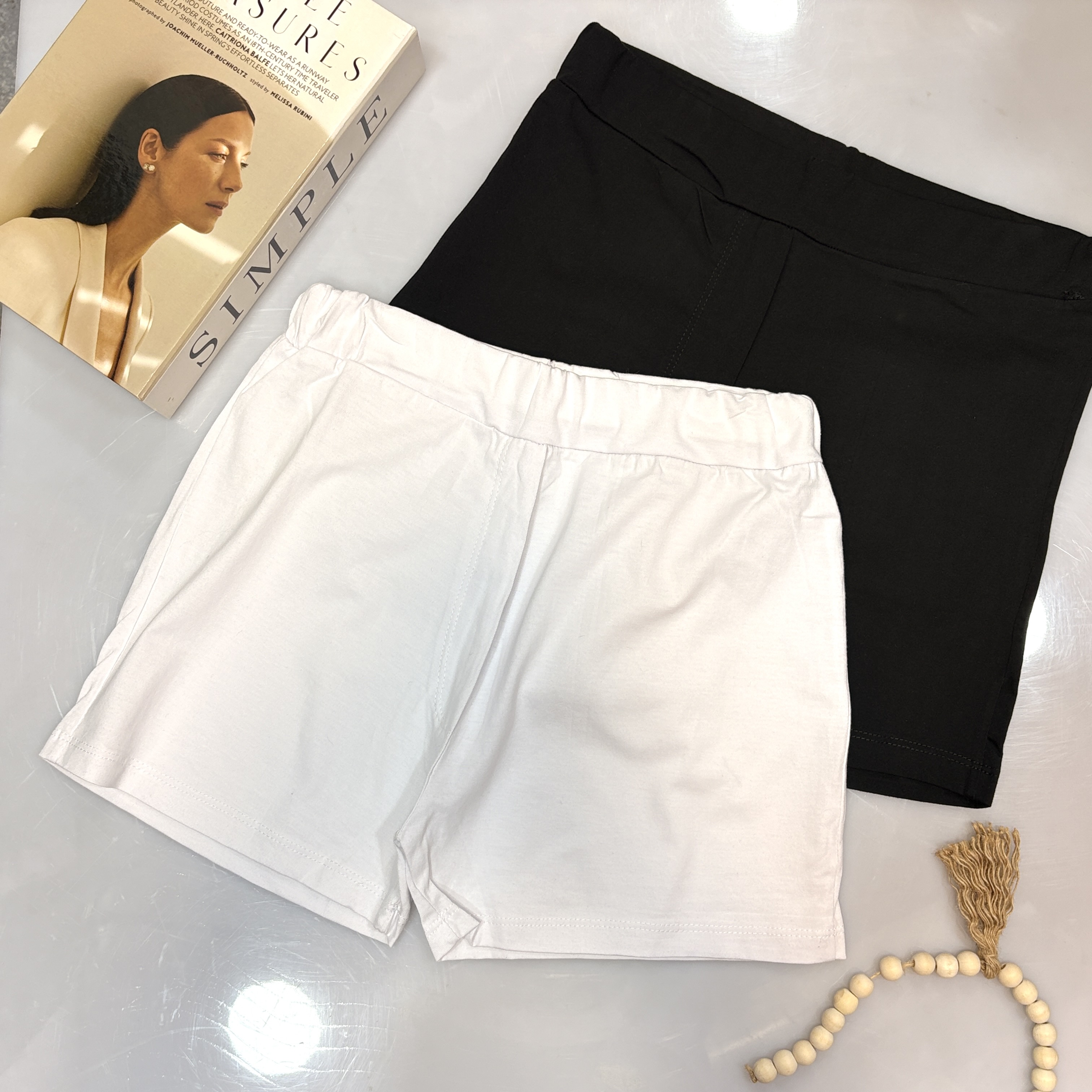 شورتک نخ پنبه سفید و مشکی کمر کش راحت