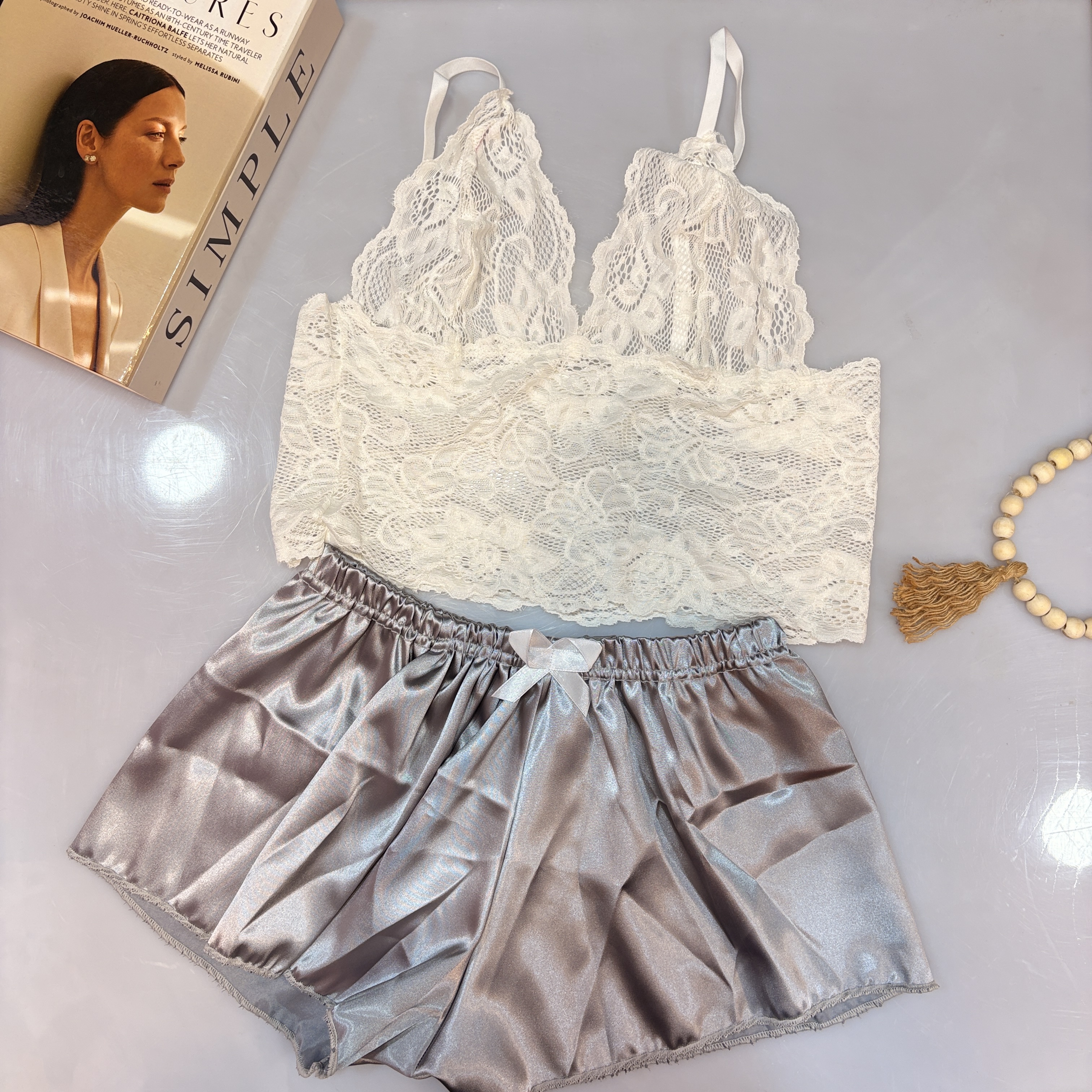 مدل تاپ و شورتک ساتن طرحدار نیز در سایت موجود میباشد.