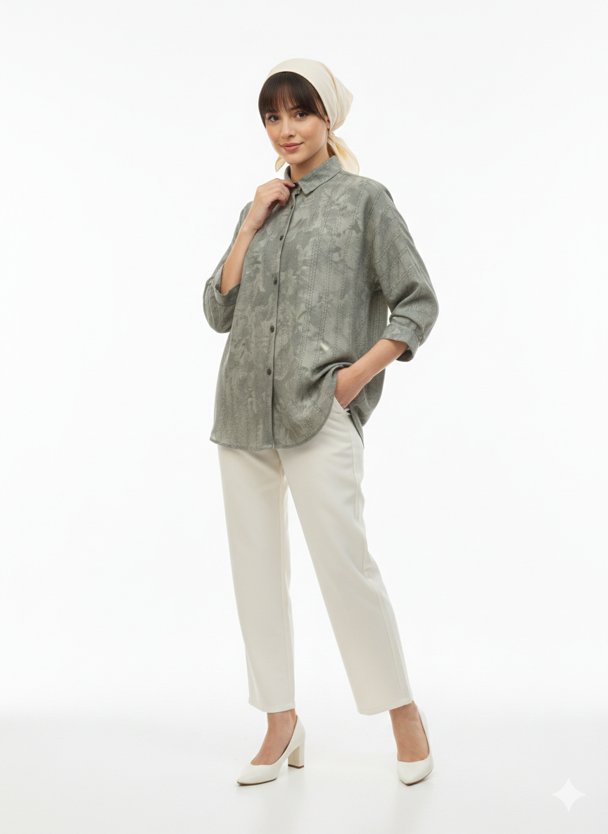 شومیز طوسی آبرنگی زنانه راحتی