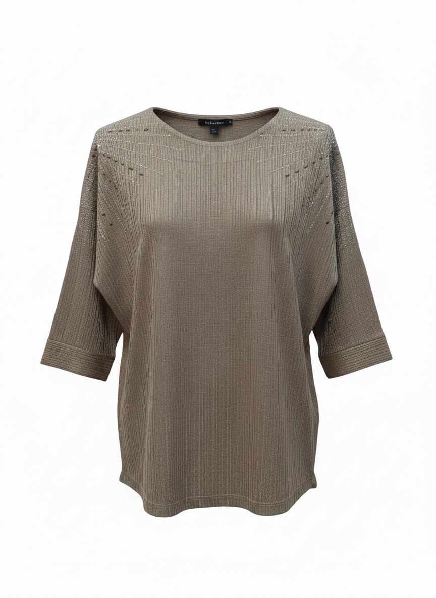 بلوز کریشه درجهیک با آستینهای سه ربع و تنخوری آزاد، انتخابی ایدهآل برای بانوانی است که به دنبال راحتی در کنار وقار و زیبایی هستند. جزئیات ظریف نگینکاری شده در بخش سرشانه، جلوهای درخشان به این کار بخشیده که آن را برای استفاده در دورهمیها و استایلهای شیک روزمره متمایز میکند.