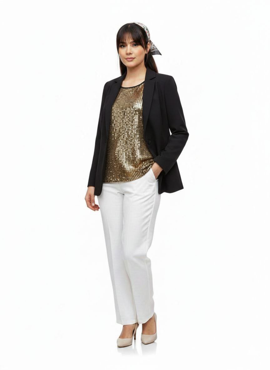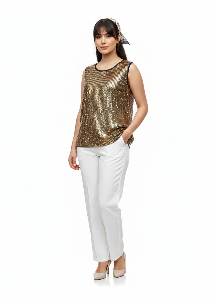 تاپ رکابی تمام پولک با درخشش فوقالعاده، بهترین گزینه برای ست کردن زیر کت و حضور در مجالس است که جلوهای لوکس و مدرن به استایل شما میبخشد.