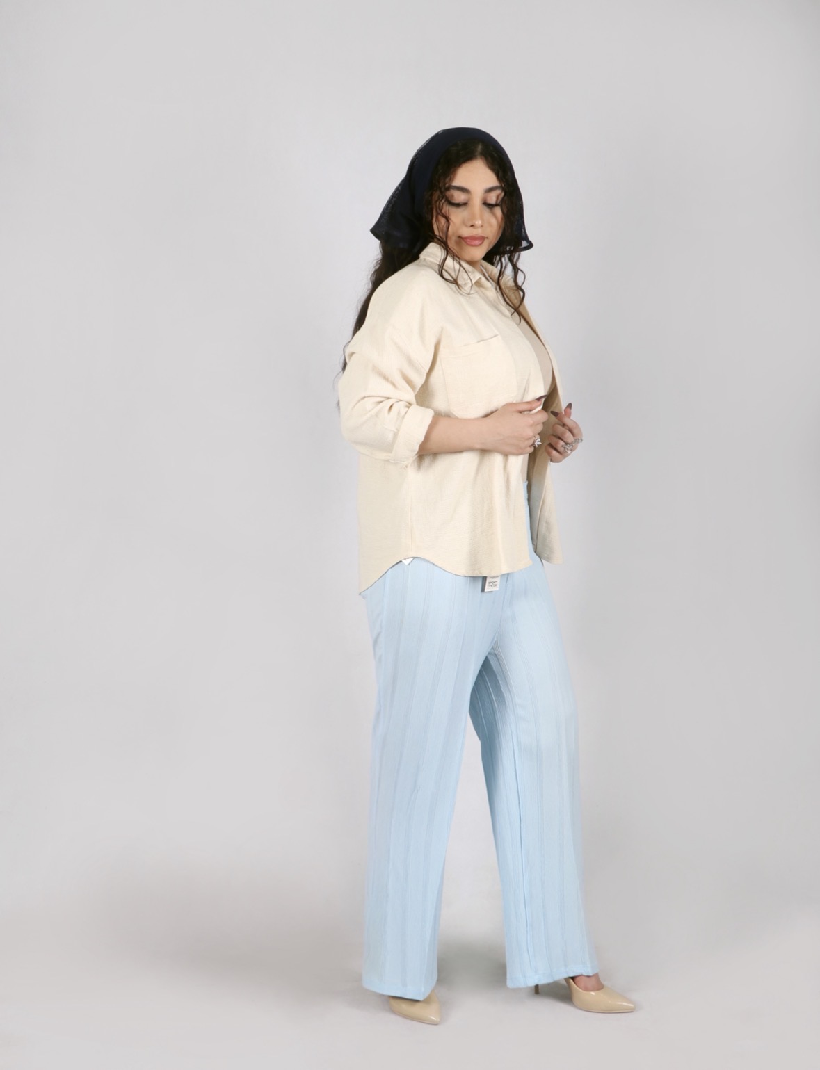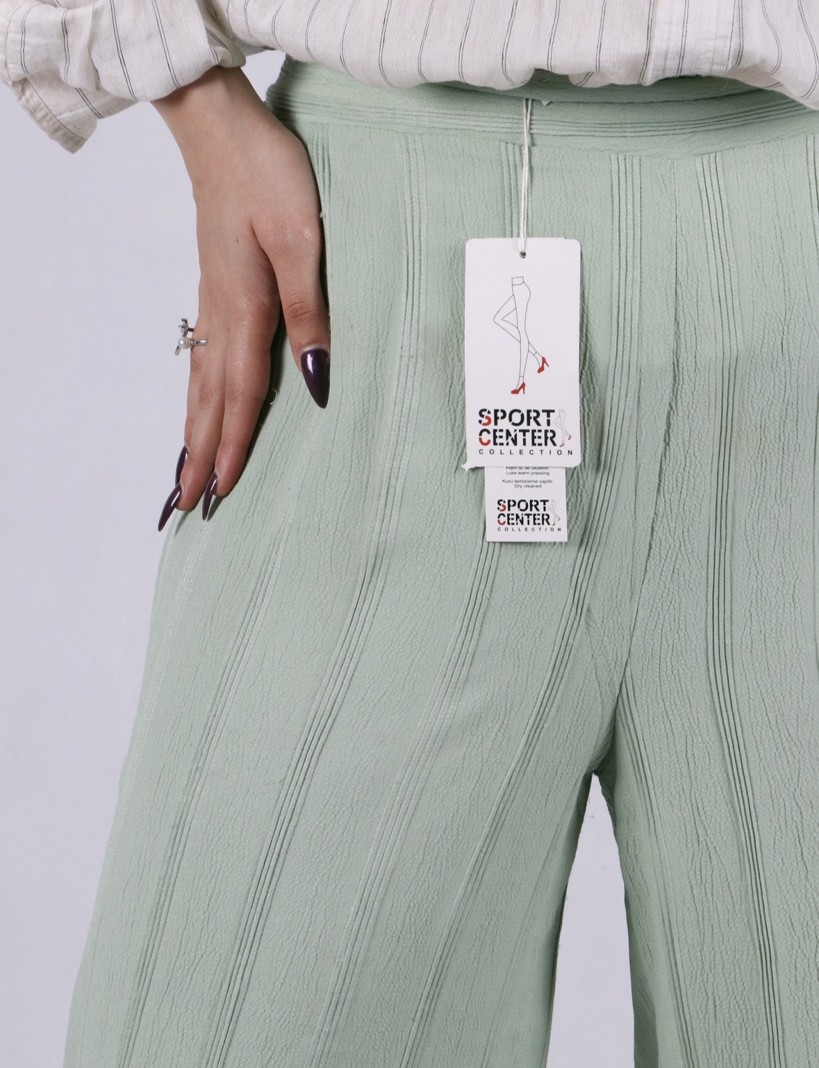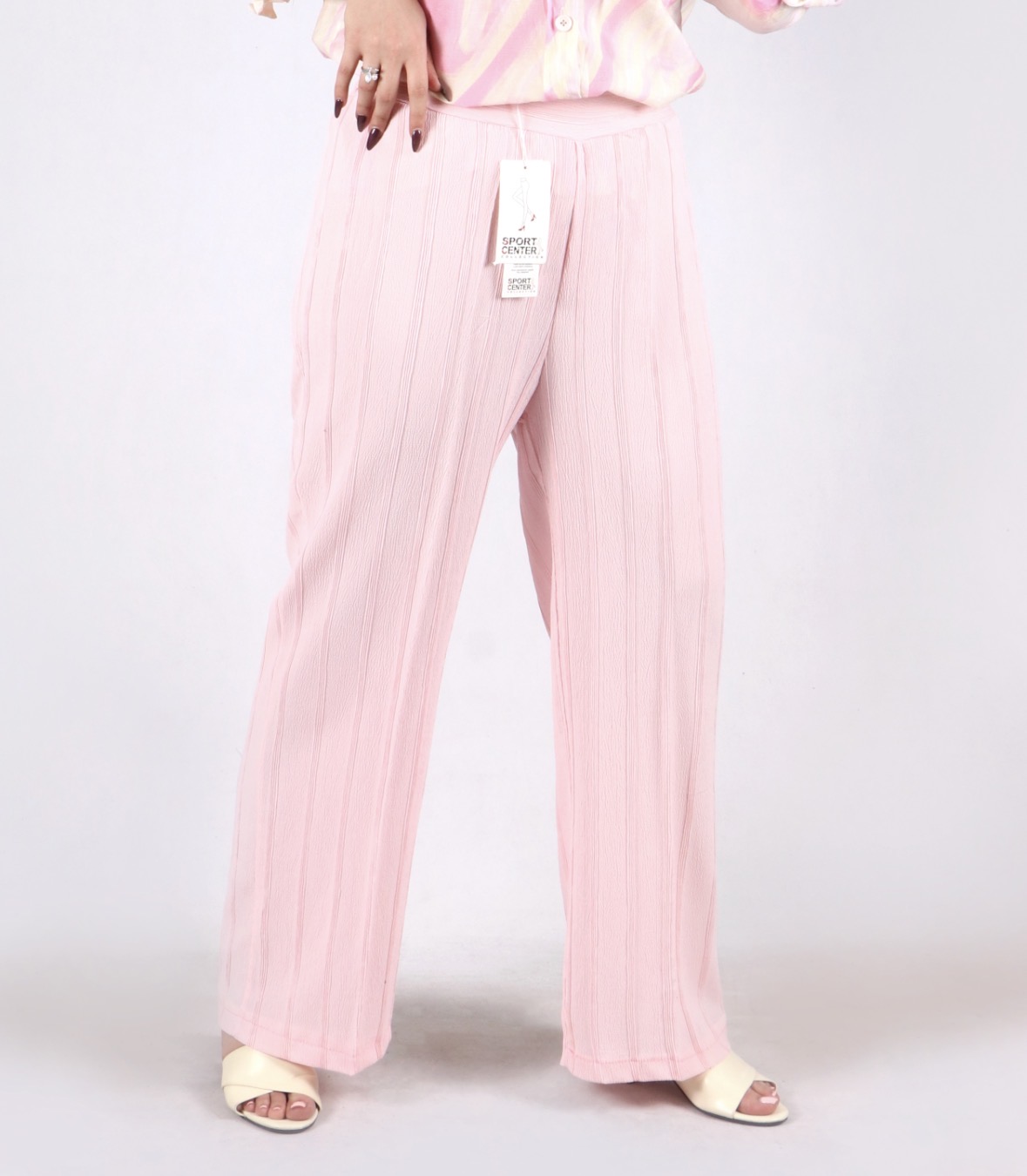 بافت سبک و رنگهای پودری این شلوار، بهراحتی با انواع شومیز و صندل ست شده و ظاهری مینیمال و جذاب برای دورهمیها و استفاده روزمره شما میسازد.